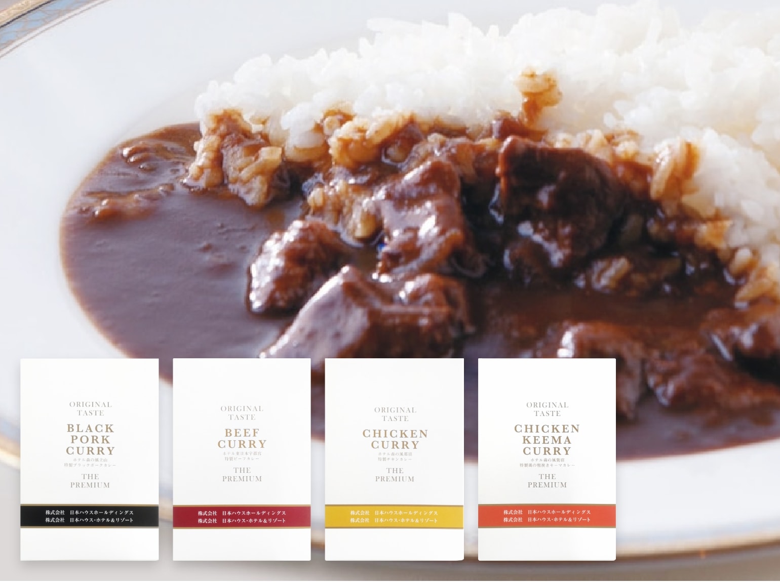 ホテル森の風シェフが監修した、「ホテル東日本宇都宮特製ビーフカレー」「ホテル森の風那須特製チキンカレー」「ホテル森の風立山特製ブラックポークカレー」「ホテル森の風鶯宿特製鶏の粗挽きキーマカレー」の4種のオリジナルカレーをセットに致しました。